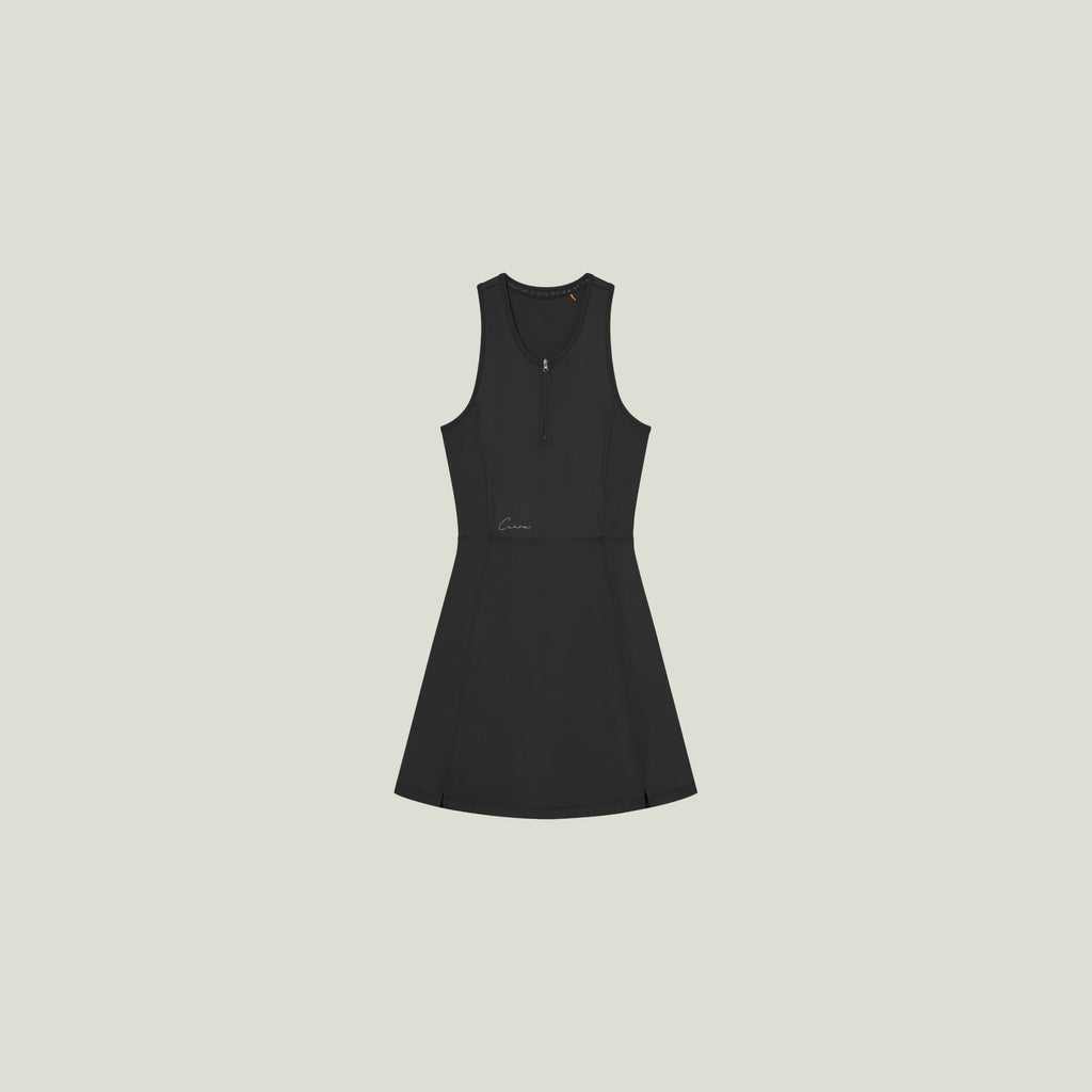 The Oncourt Cuera Dress is made for professional padel usage. This fitting is complementary to the demands of an intense padel match. The style is made with a lot of lycra to improve optimal comfort and movement when playing. The Japanese YKK zipper with a semi autolock puller prevent skin irritation. The padel dress is designed with side slit and an opening at back for added. Our recycled fabric is made in Italy with ECONYL® nylon and elastane.