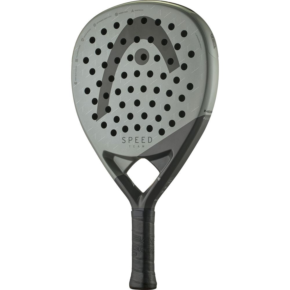 Head Speed Team is an easy-to-handle padel racket, perfect for beginner and recreational players looking for an excellent blend of speed, control, and comfort. Its teardrop-shaped design features a revolutionary construction with a highly durable hitting surface. The fiberglass face provides a more forgiving ball response, while the slightly firmer Power Foam core ensures optimal balance and power.