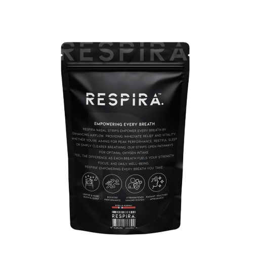Respira Nasal Strips öppnar försiktigt dina näspassager och ger omedelbar lättnad för enklare andning. Den innovativa designen skapar ett milt lyft utåt som vidgar luftvägarna och ökar luftflödet med upp till 33 %. Njut av enklare andning hela dagen och natten.